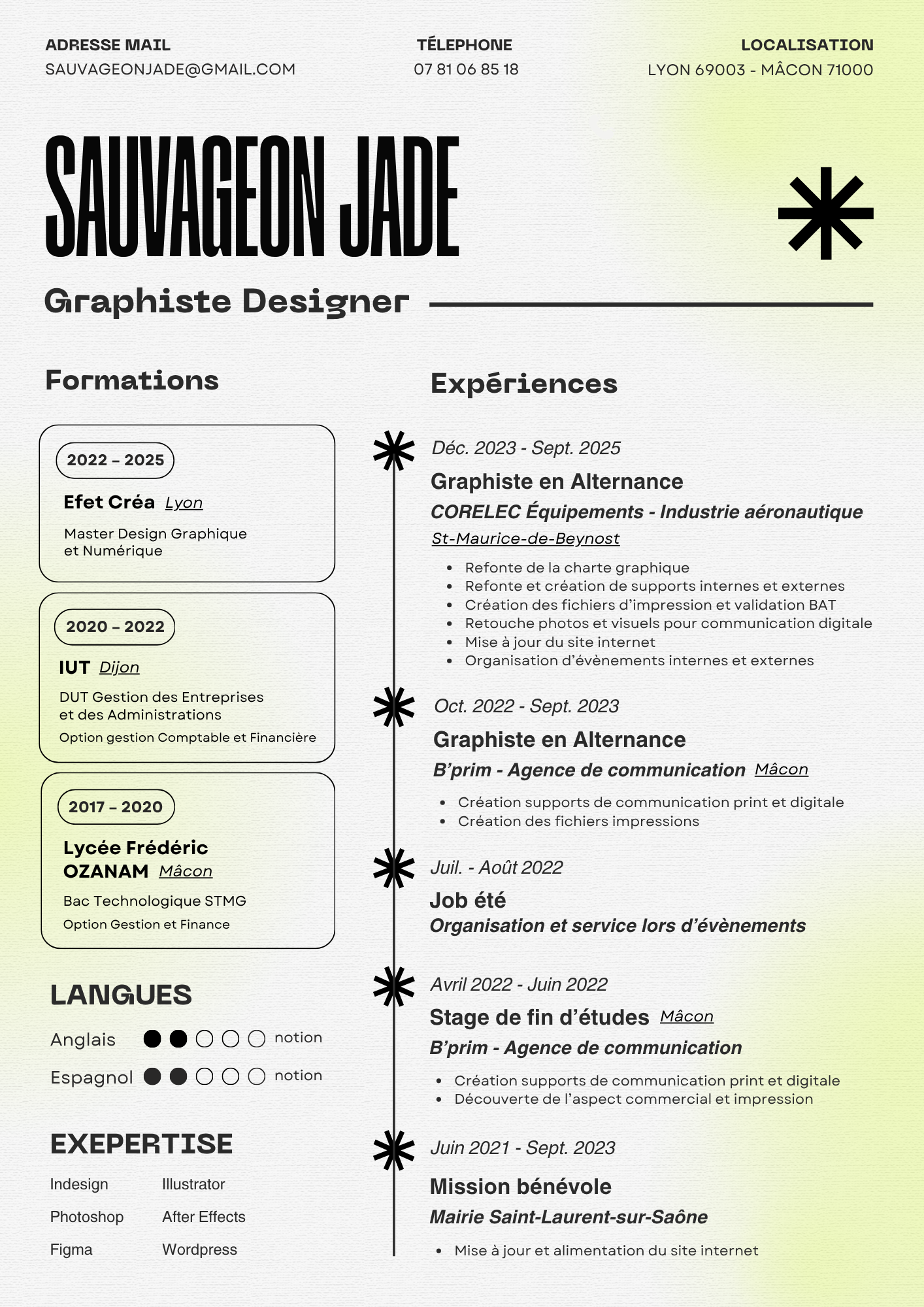 Hello, moi c’est Jade, je suis graphiste junior avec 3 ans d’expérience.